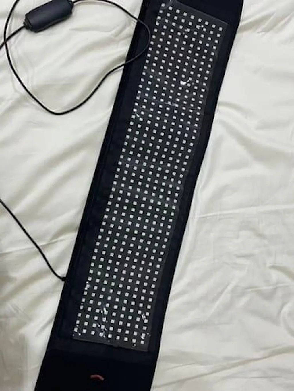 Der Gürtel verwendet 105 Triple-LED-Chip-Sets, die 660 nm rotes Licht (für die Reparatur der Hautoberfläche) und 850 nm NIR-Licht (zum Eindringen in tiefere Gewebeschichten zur Schmerzlinderung und zum Fettabbau) kombinieren.